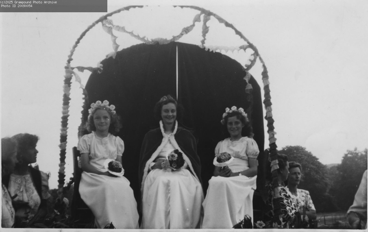 The Carnival Queen 1949. The Queen is Jean Juleff (now Hicks) and the attendants are (left) Joan Mannell and (right) Joan Richards. Both the Mannell and the Richards families occupied Glen View, the house that stands in the fork on Old Hill, at different times.