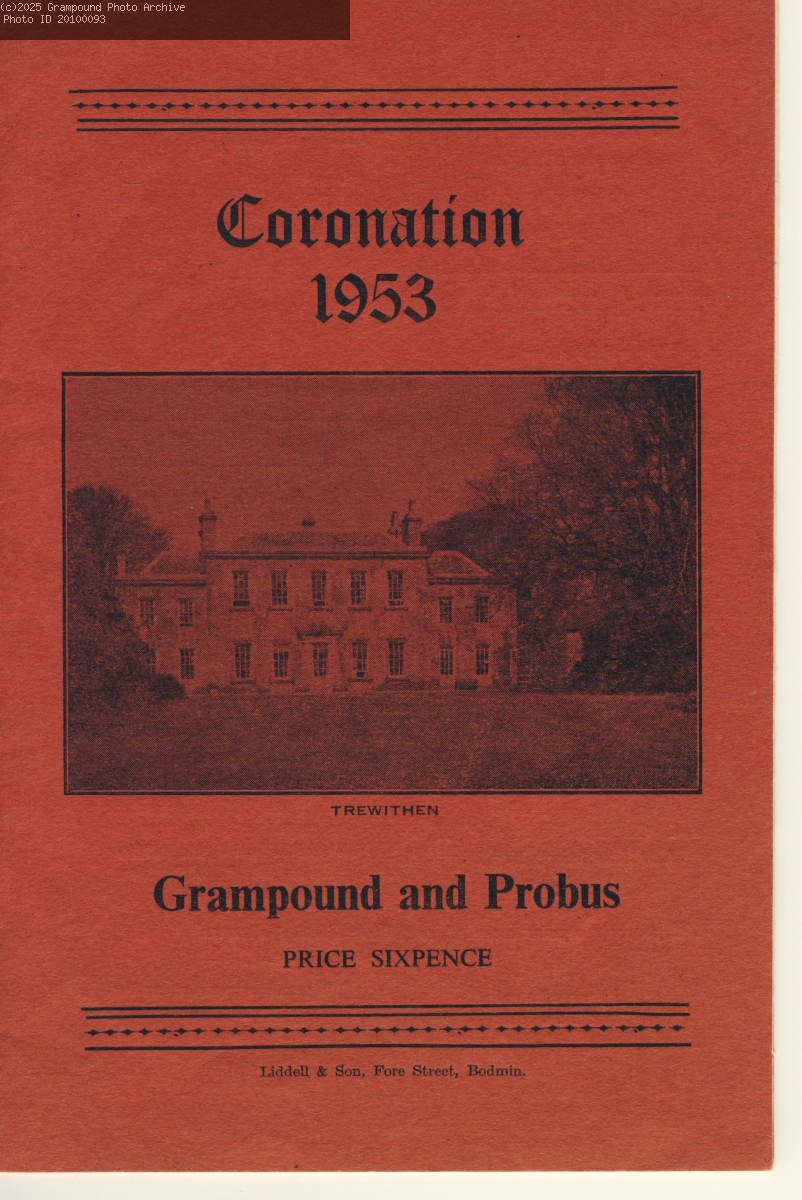 Front cover - Coronation Day Programme - 1953. This is an electronic version of the programme of events in Grampound and Probus associated with the coronation of Queen Elizabeth II in 1953.