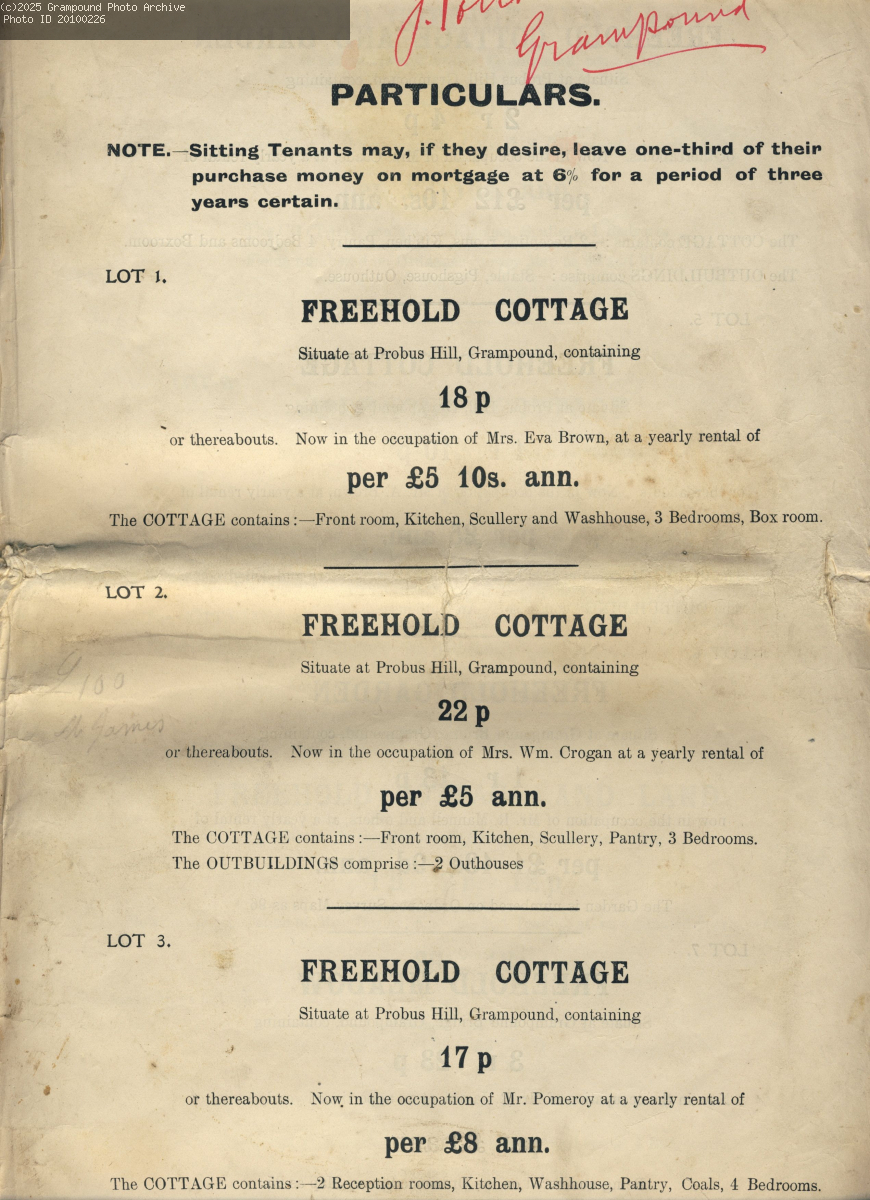 Property sale 1919 :Lots 1 - 3 Old Hill