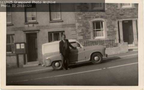 Basil Spry with Austin van outside the police house (now called Fairman House) opposite the junction to Creed Lane.