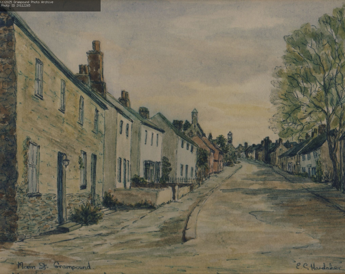 The artist was Edith Hardaker and it is believed that it was executed in the 1980s. Edith Hardaker only took up painting when she retired at 70 but quickly became so accomplished in watercolour work that she taught classes in the subject. As the mother of Peter Hardaker, she was a frequent visitor to Grampound and painted many views of the village and surrounding area.