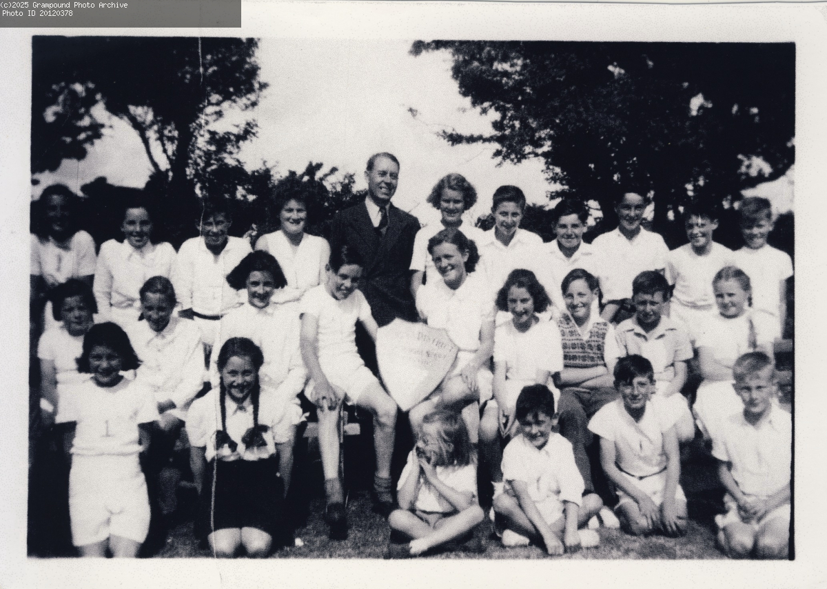 winners of the inter-school sports. Back row, L-R Mary Thomas, Maureen Mannell(Kemp), Norman Way, Jill Matta,Mr Dobel, Valerie Cox(Cundy), Johnston Mitchel, Raymond Mannell, John Emmett, Anthony Mannell, David Paynter. Middle row, L-R Margaret Richards, Iris Ruchards, Leone Spry (Crowe), Bill Pollard, Jenny Horton(Rowe),Diana Mitchell, Douglas Richards, Paul Juleff, Jill Dobel. Front row, L-R Marilyn Best, Susan Mannell, Susan Lukey, Malcolm Spry, Donald Ford, William Richard.