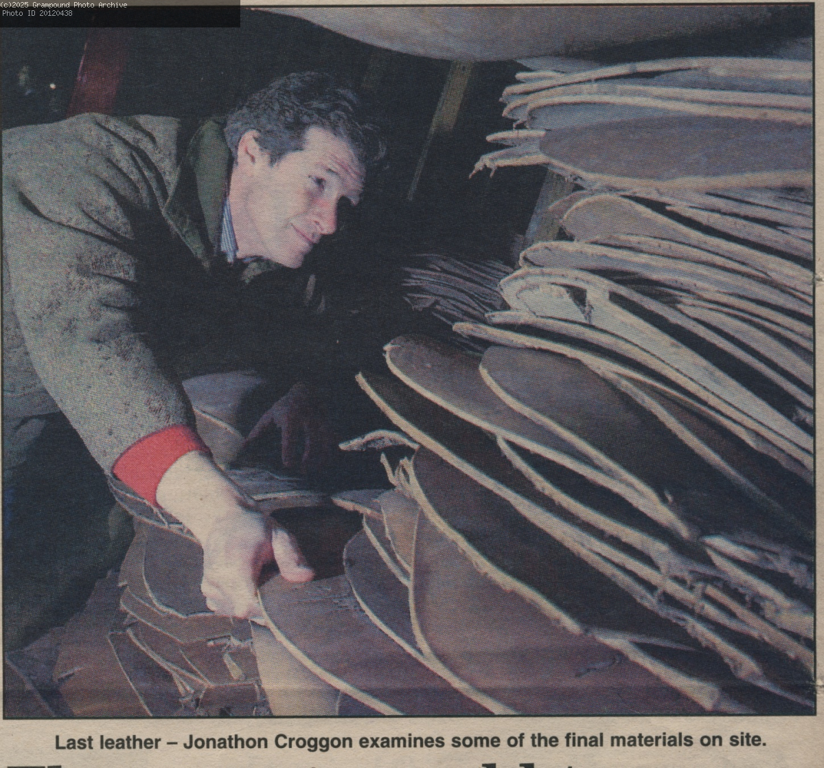 Cornish Guardian November 2000 - at the time the Manor Tannery ceased production. Jonathon Croggon looking at some of the stored bends of leather.