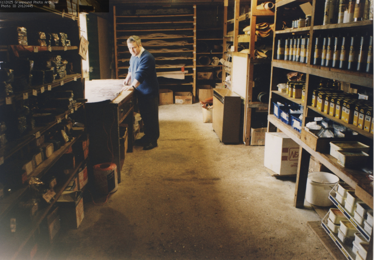 The Manor Tannery shop in its last years. Kevin Blayney is seen working there.