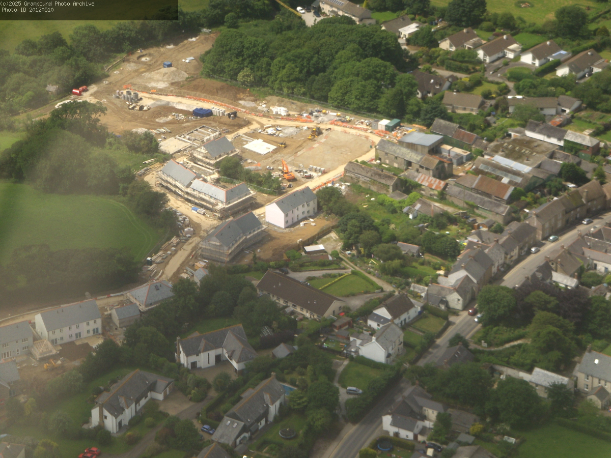 Aerial photo of the tannery re-development - June 2012. At the end of 2011 the re-development of the old Manor Tannery site began. The re-development consisted partly of new-build on land formerly owned by the Manor Tannery and the repair and conversion of those of the tannery buildings that were of architectural merit. These were to become residential and commercial units. The company J Croggon and Sons had traded from the Manor Tannery since 1845 but the Croggon family had operated tanneries in Grampound since 1712. The company finally ceased trading in 2002.