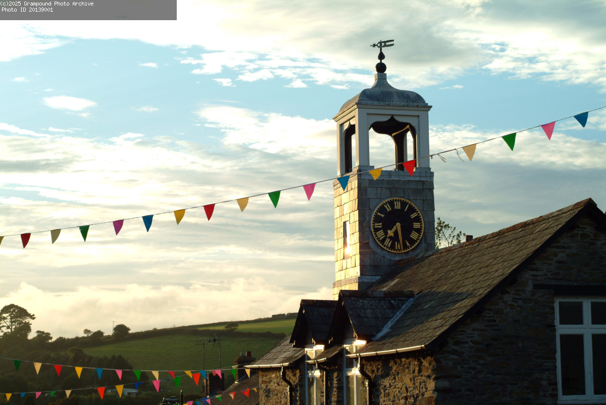 Bunting in Fore Street at sunset on carnival day September 1st 2012.
