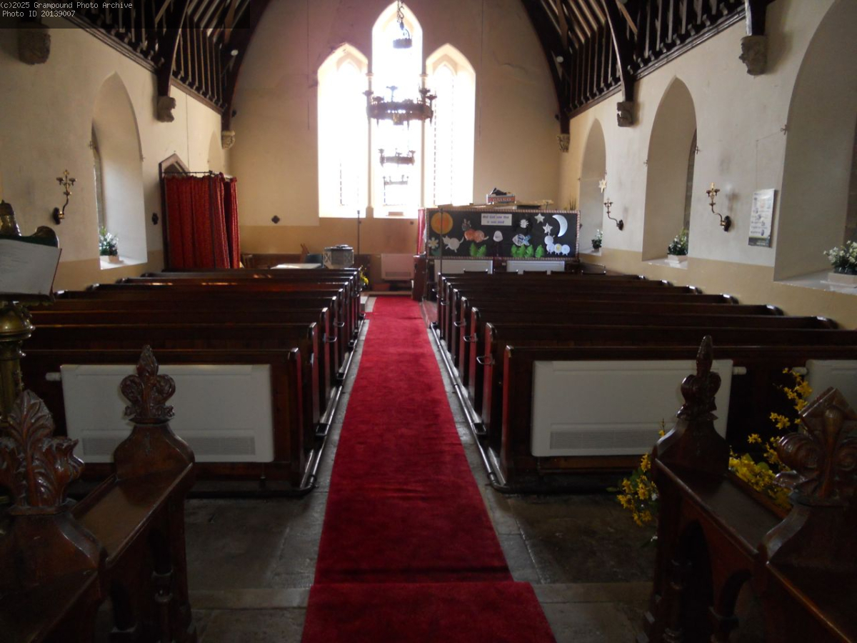 The interior of St Nun's Church in September 2013, immediately prior to the removal of the wooden pews in the choir. The pews in other parts of the Church remain in place as shown here.