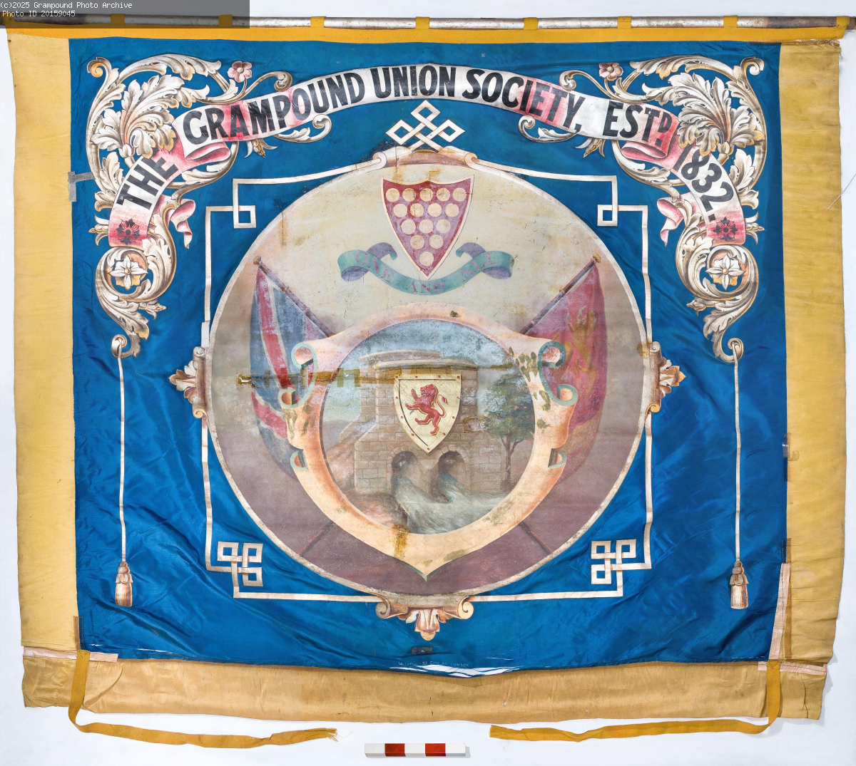 The Grampound Union Society banner. A silk, double sided banner dated approx. 1832. Made by George Tutill,an expert banner maker in London.