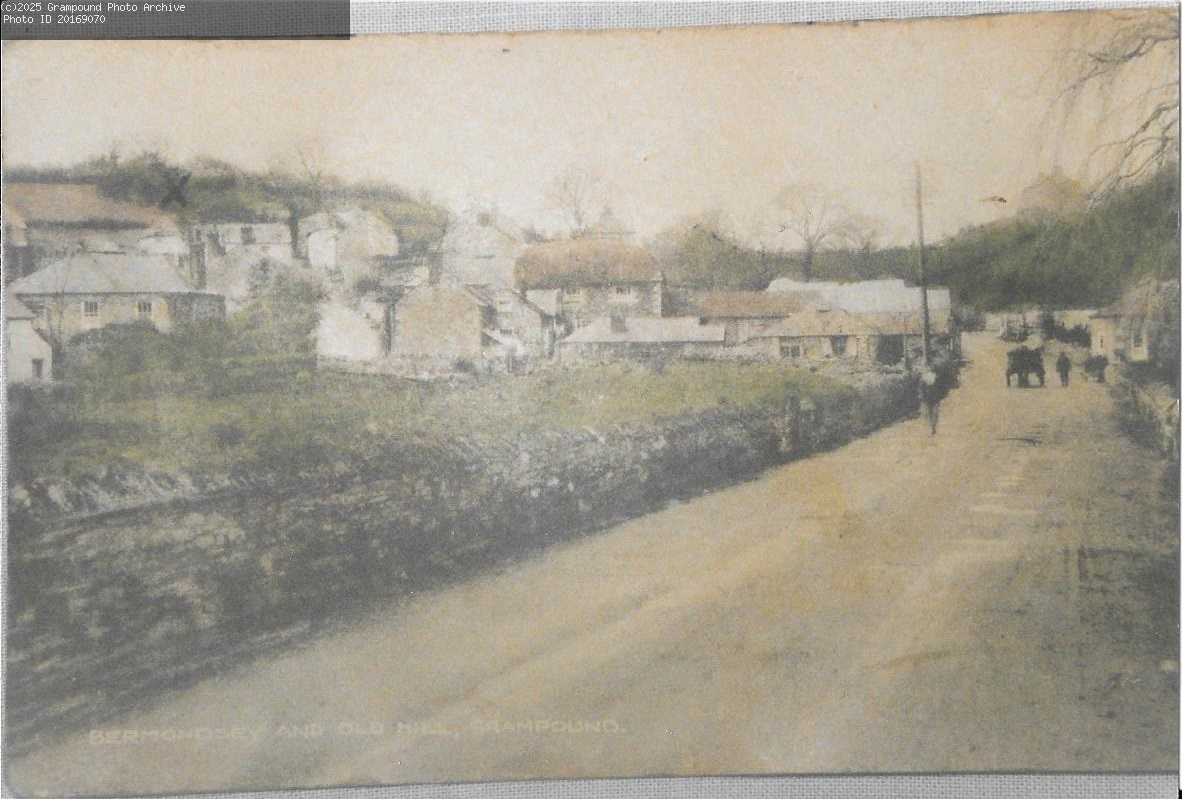 A colour version of Bermondsey and Old Hill. This picture shows the old bridge, the allotments on the left and the Blacksmith Shop opposite the Toll House. Parts of this was altered during the road widening.