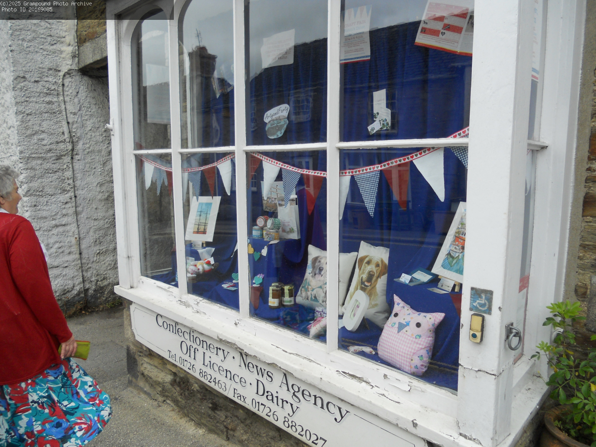 This is the Display Window outside of The Hollies Store and Post Office. The lady looking in the window is Joy Rowe. This was taken on the 29 June 2013 which was the last day.