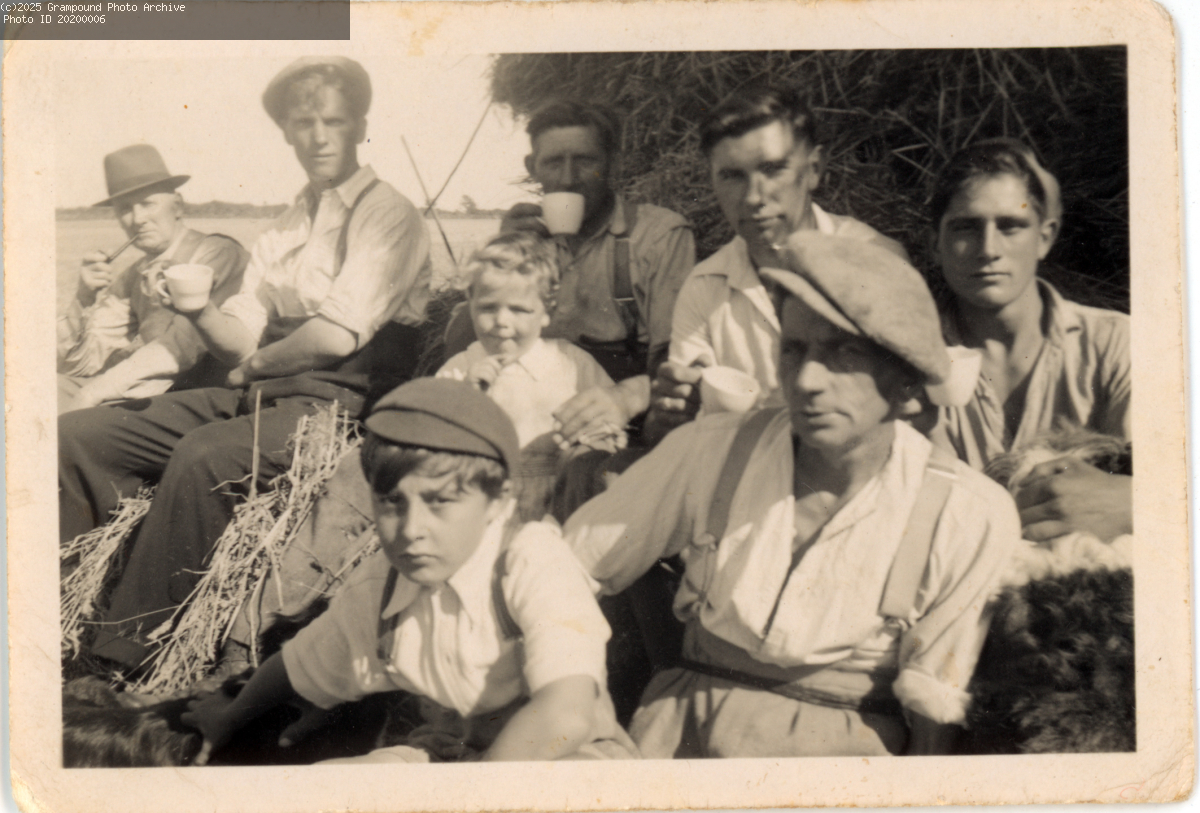 Grandad Endean, ?, Harry Lobb,Baby Tim Lobb on his knee Des Pollard, Archie Mannell, Roy lobb,John Lobb