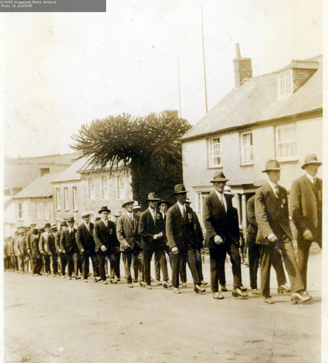 Hospital Sunday 1928, men marching up Fore Street