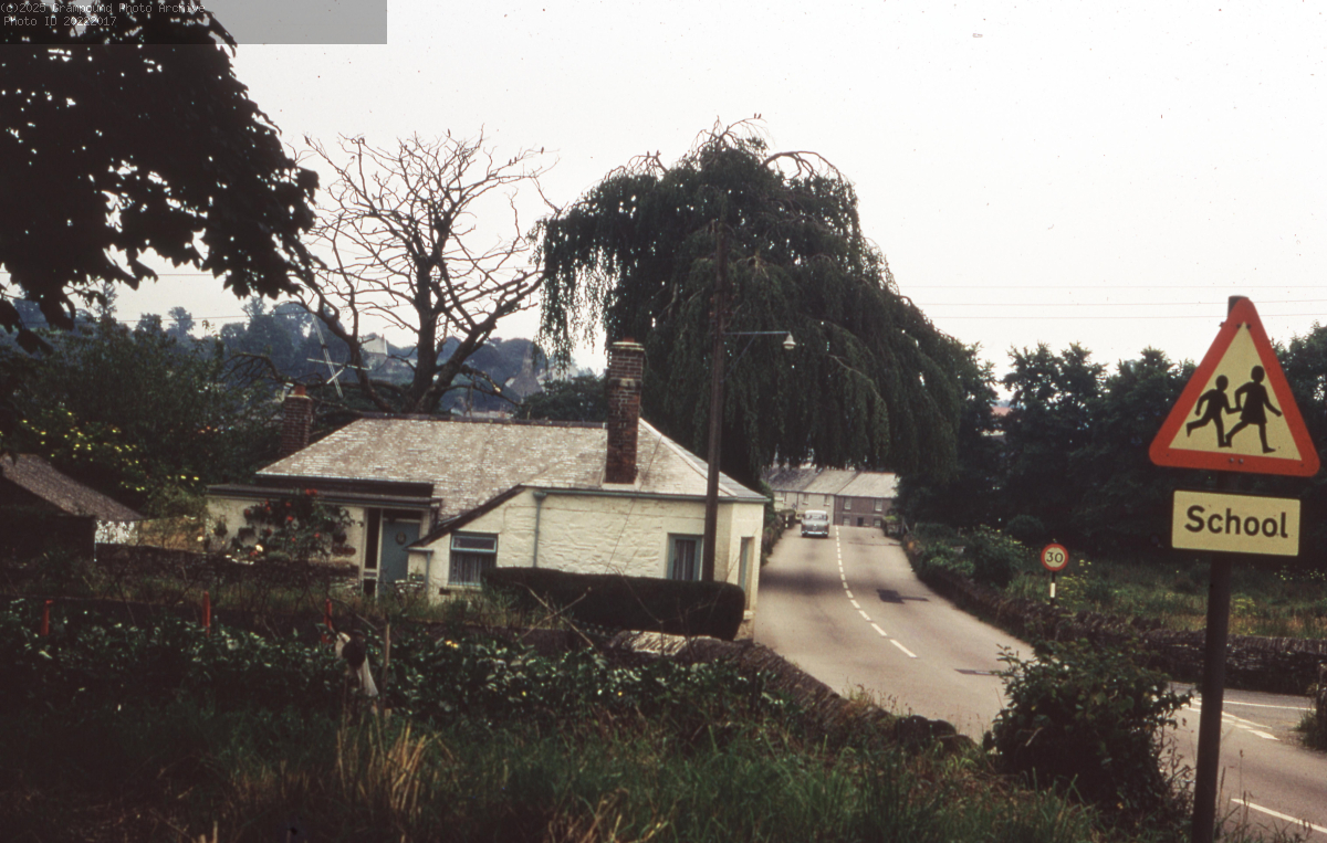 The toll house in 1968 just before the road was straightened. The allotments are on the right by the 30mph sign.